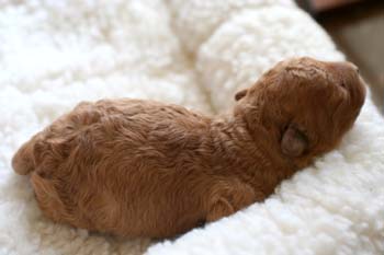 ちょっと犬らしくなったびーちゃん。ミルクを飲んでお腹いっぱいになってネムネムになってます。