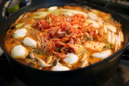 具にはあさり、白菜、しめじ、葱、豆腐、えびつみれ(市販品)、キムチなどを入れました。