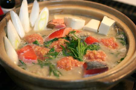 美味しい鮭を買ってきてあったので、鮭、肉団子を入れて食べました。
