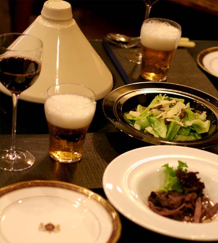 ワインを飲みたかったので、ワインとビールを食卓に置くだけで、手をかけた夕飯なのよ~と言ってるみたい。