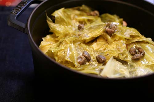 電子レンジでチンしてしんなりさせたキャベツに、アンチョビとケッパーを加えてオリーブオイル、レモンで和えただけです。