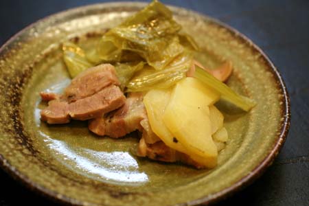 もち菜がなかったので白菜で代用。これもこの地方では定番です。
