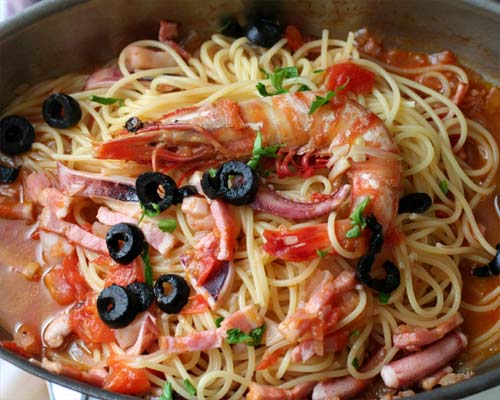 鍋用にわたり蟹を買ってきてあったので、それと海老を使って。