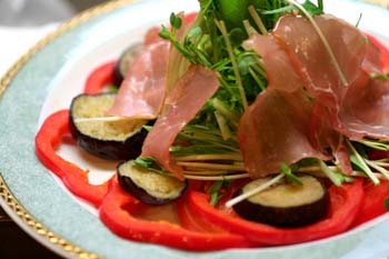 オリーブオイルでニンニクと炒めたなすとパプリカの入ったサラダです。