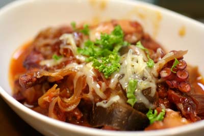 時間をかけてじっくり柔らかく煮込んだ蛸と、ピリッと辛いトマトソース。