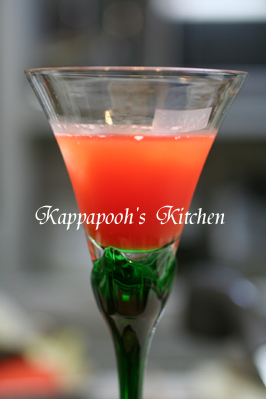 グラスのふちにローズソルトをつけて・・。