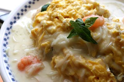 バジルがきいたご飯にふわとろの卵、そしてホワイトソースもいい感じにマッチしてます。