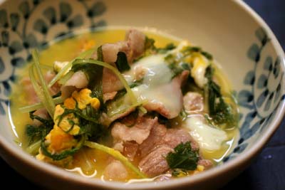 ちょっとばかり残ってた豚肉と、かぶら蒸しで使った卵の残りを無駄にしたくないと思って作ったもの。