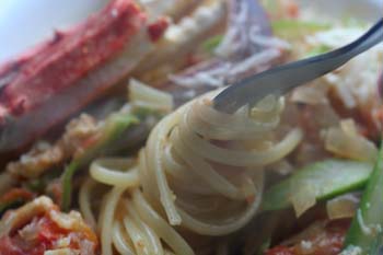 日曜日のお昼ご飯はパスタでした。金曜日に活き渡り蟹を買ってきて、その日のうちに蒸しておきました。
