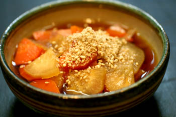 にんじんとあわせて、生姜の千切りと輪切り唐辛子を入れてぴり辛な感じで煮てみました。