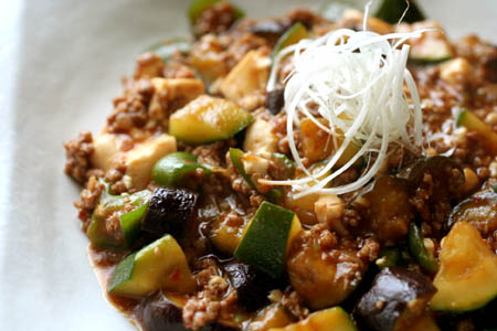 ズッキーニ、茄子、ピーマンも入れて、豆腐は水気を切って絹ごしを使いました。