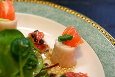 野菜で煮た煮汁をジュレにしたので、ジュレに野菜の味が移っててそれが豆腐にも合うんです。