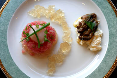 *マグロのタタキとホタテのジュレ仕立ての一皿*