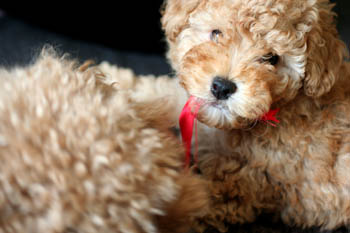 「リボンで引っ張りあいっこ、楽しいでしゅ♪」