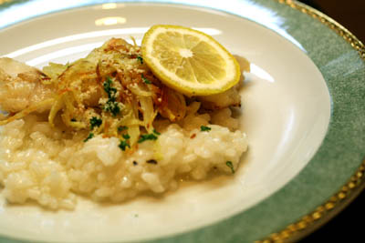 *真鱈のトルティーノ・レモンセロリリゾット添え*