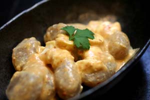 実は、冷蔵庫に少しばかり残ってる大根が気になっていたので、それと里芋、そしてやはり少し残ってたひき肉でだんごを作って、シチューにしたのです。