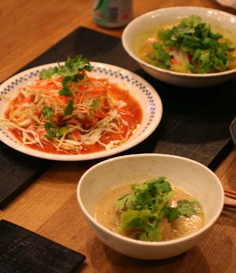 こちらもパクチーたっぷり乗せて、雰囲気だけはタイ風ってことで。