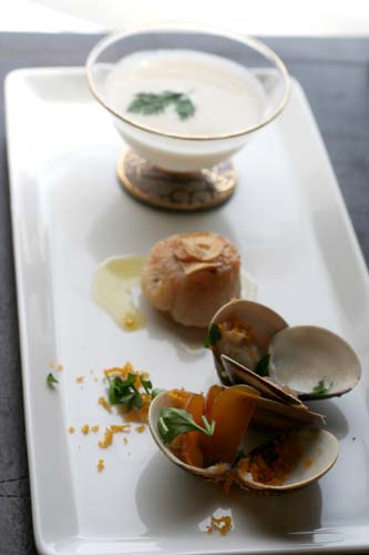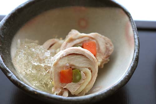 味が一緒になってしまうので、こちらは冷ました状態で白だしで作ったジュレを添えました。