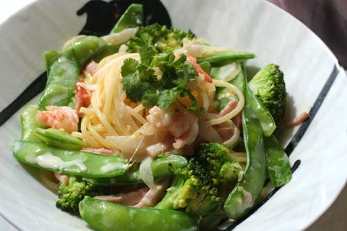 *海老とさやえんどう・ブロッコリーのクリームパスタ*