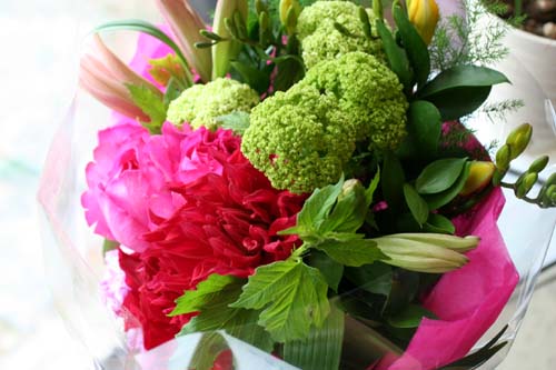 素敵な花束はコナさんが信頼するフラワーコーディネーターの方に依頼して作っていただいたんだそうです。