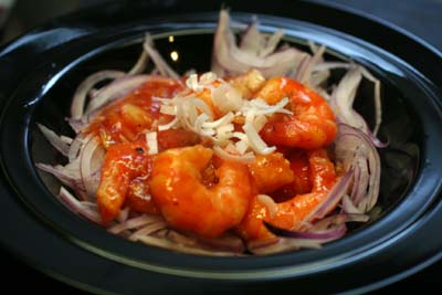 エビのチリソース。豆板醤も入れちゃいましたがほんの少し。