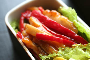 赤ピーマンしかなかったので、こんな色合いになってしまいました・・。