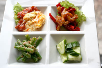 ポテトサラダとかぼちゃの煮物は前日の残りです。