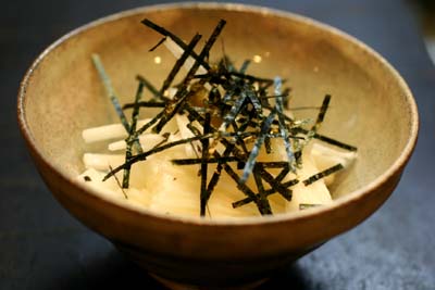 大根と鶏肉を酒と白だしで煮たものです。ゆずの香りがとてもいい。
