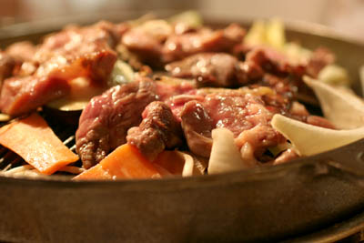 牛ホルモンの溶岩焼き~!