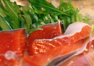 美味しい鮭を買ってきてあったので、鮭、肉団子を入れて食べました。