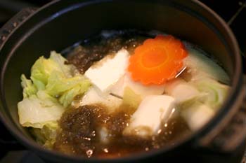 小さな鍋でやったので、そのためにだしの代わりに入れたおぼろ昆布も夫に好評で、野菜とともに食べてました。