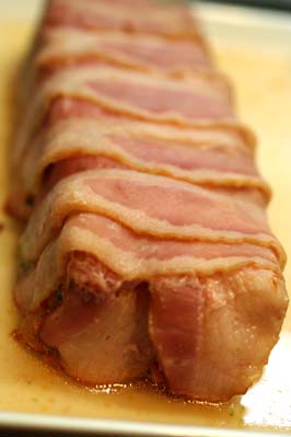 ベーコンがブロックのものしかなかったので、薄く切れなかったのと、長さが足りなくって見た目にはいまひとつですが・・・。