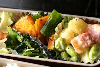 今日と明日は夫が夕飯いらないので、せめてお弁当をと作りました。