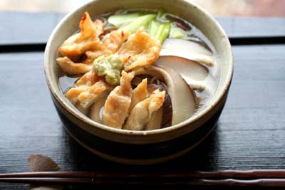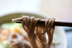 *鶏皮・椎茸入り蕎麦*