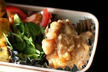 本当はニンニクも入るとタイ風になりますが、お弁当に生ニンニクは使えませんから、ニンニク抜きです。