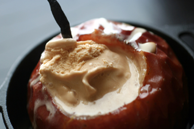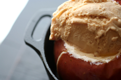 まだ温かいうちにアイスクリームを乗っけて。