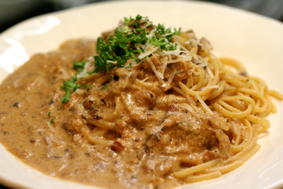 牛乳、生クリーム、チーズを新たに加えて、パスタソースにしました。