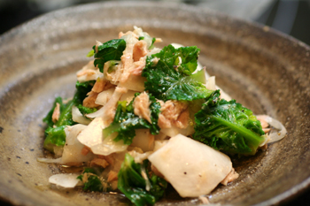 かぶは、油でさっと炒めて塩・コショウし、ツナで和えました。