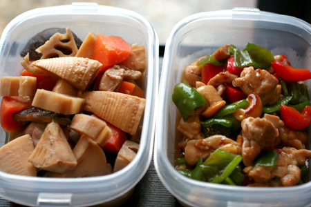 義父に持って行ってあげるおかず、今日は筑前煮と鶏肉のカシューナッツ炒めです。