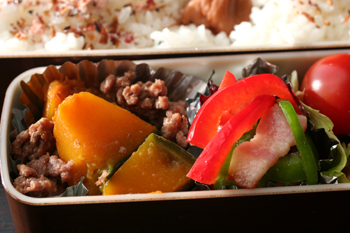かぼちゃは、早く煮えるのでお弁当向きですよね~。