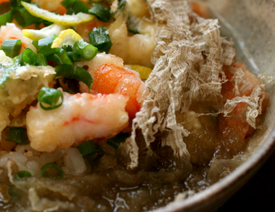 で、2杯目は、ゆずを添え、とろろ昆布ものせて煎茶をかけて、お茶漬けに・・。