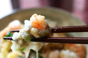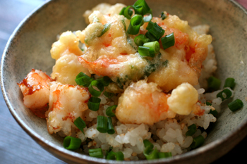 炊きたてご飯に揚げたての海老天。美味しい~♪