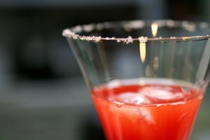 グラスのふちにローズソルトをつけて・・。