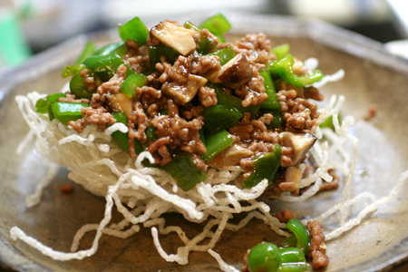 途中、ピーマンを加えて・・。