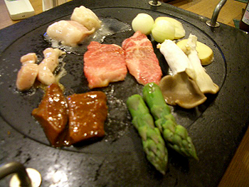 アスパラ、ペコロス、ひじり茸、ジャガイモ。