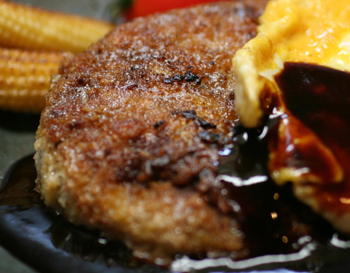 見た目はハンバーグですね。味もハンバーグ。衣が厚いだけ。