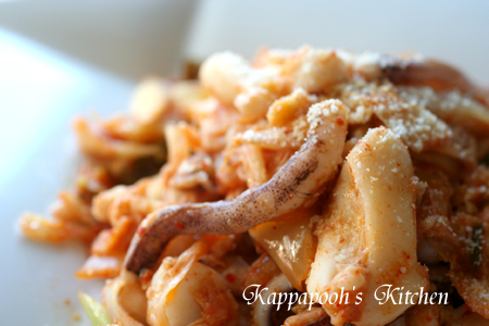 豚ではなくイカなので淡白になるかな~と思って入れたチーズ。