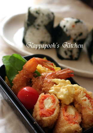 おにぎりだけでもいいかな?なんて思ってましたが、急にやる気になって、揚げ物をしました。