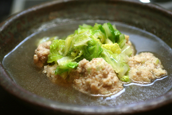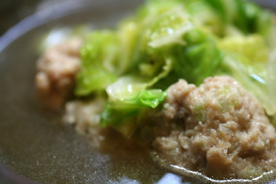 この日は鶏のひき肉がなかったので、もも肉とネギをフードプロセッサーで細かくし、そこに卵、小麦粉を加えてだんごにします。