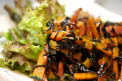 *かぼちゃとひじきのピリ辛炒め*